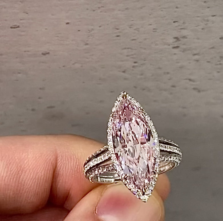 MARQUISE FANCY PINK DIAMOND 18K WHITE AND ROSE GOLD RING